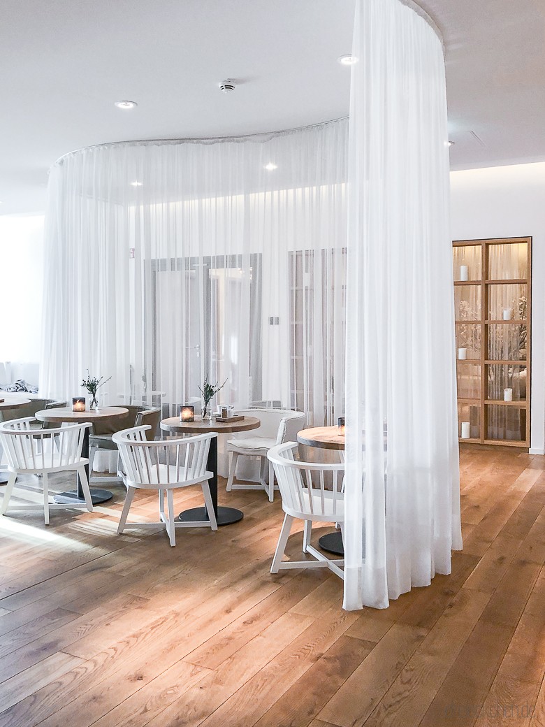 Warum bei mir schönes Design auch eine Rolle bei der Hotelauswahl spielt? Ich liebe es daraus neue Interior Inspirationen mit nach Hause zu nehmen. So gern hätte ich in unserem Bad auch einen großen Rundspiegel oder die Hängeleuchten, die Leinenkissen auf der Couch oder die farblich passende Tagesdecke mit Waffelstruktur auf dem Bett.