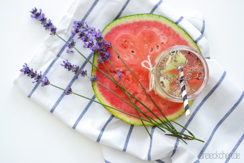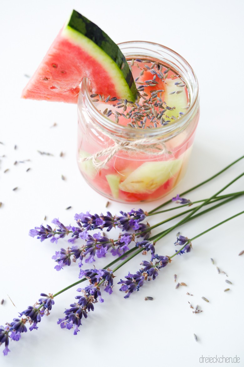 | Wasser (still oder sprudelnd) Süße Melonen (Wasser- und Honigmelone) getrocknete Lavendelblüten |